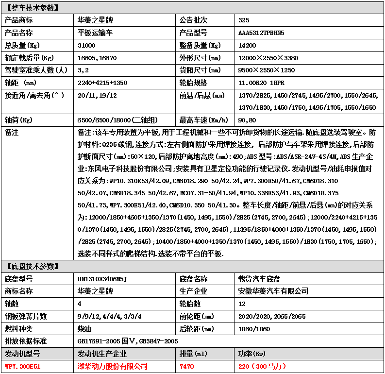 华菱之星前四后八平板运输车上户吨位16.6吨,经过测试实际可拉货物35吨,适合载重35吨及以下的物体的运输,350以内大中型挖机、叉车、装载机运输首选,燃油、环保齐全,上户不超重。